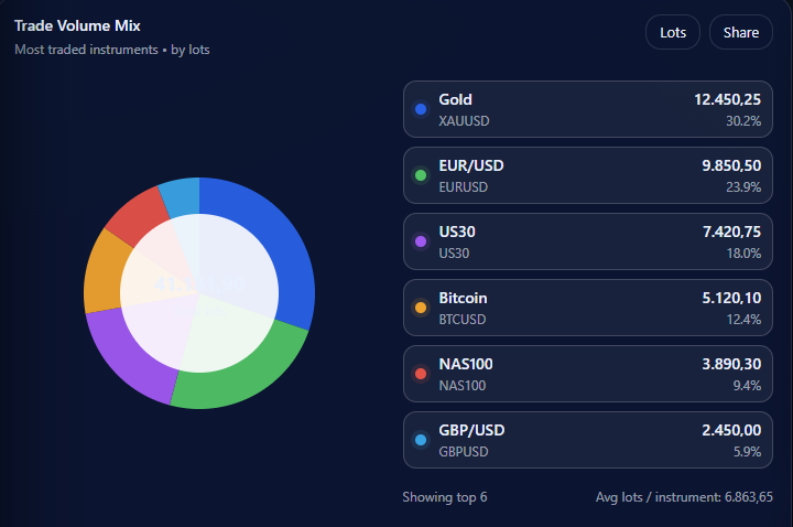 Visualize trade volumes across all markets in one centralized view to spot trends fast.